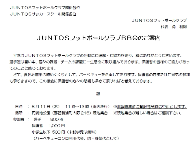 [PR] ×[PR]上記の広告は3ヶ月以上新規記事投稿のないブログに表示されています。新しい記事を書く事で広告が消えます。 JUNTOSフットボールクラブBBQのご案内 ●印刷は下記のPDFファイルをご利用ください JUNTOSフットボールクラブ・バーベキュー大会のご案内 PR コメント